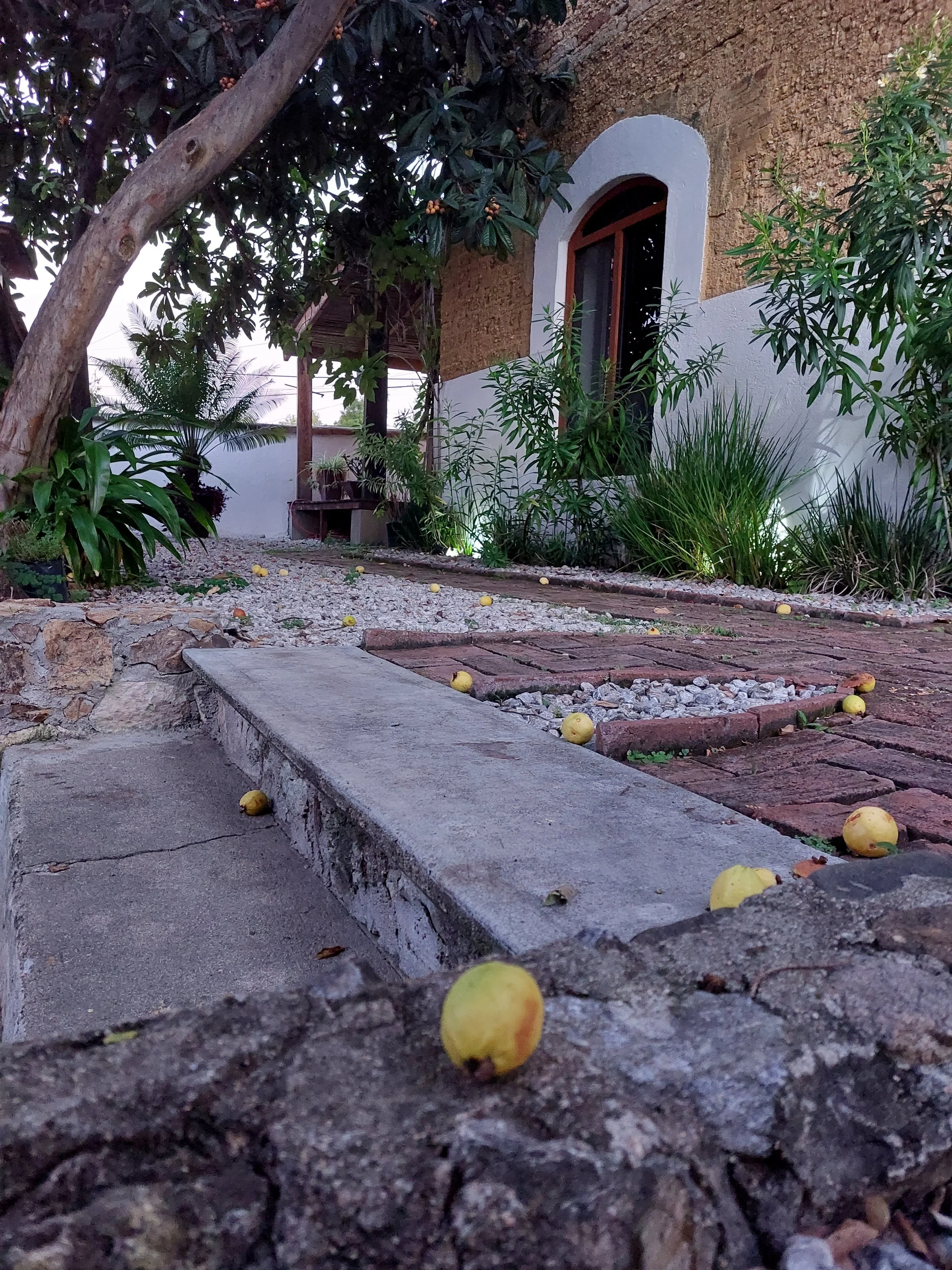 Strolling around the compound as we talked, I described my little hotel for Larry. It was more artistic than I thought a former convent would be. Laid out like a wealthy villa shrunken down to size, different buildings were spread out among various paved squares and gardens. Freshly fallen lemons scattered along the walkways made for a charming touch.