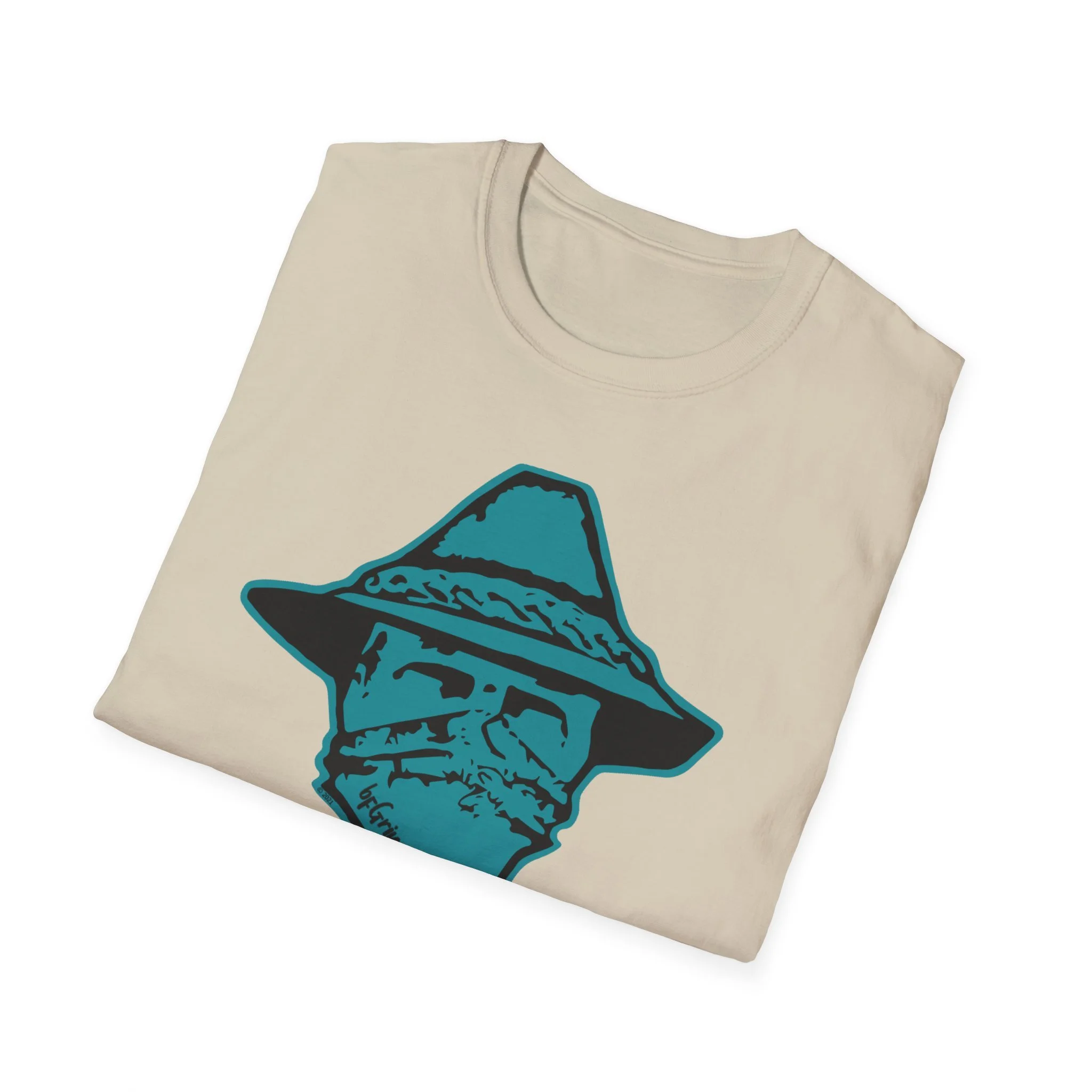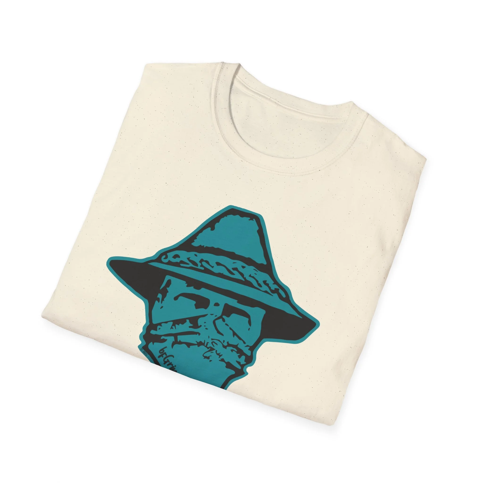 A lightweight, ring-spun cotton tee with a bold, hand-drawn outlaw motif that feels equal parts vintage roadside and modern streetwear. The turquoise masked cowboy graphic sits crisp on the chest, giving the shirt an adventurous, slightly rebellious edge without shouting. Wear it on slow afternoons at the coffee shop, while cruising backroads, or layered under a flannel for nights around a bonfire—this tee settles into everyday life and becomes one of those pieces you reach for when you want a little character. The fabric is smooth and breathable, the collar holds its shape, and the tear-away label keeps the neck comfortable. It’s made with responsibly sourced cotton and built to print beautifully, so the design keeps its sharp lines and vivid tone through regular wear.