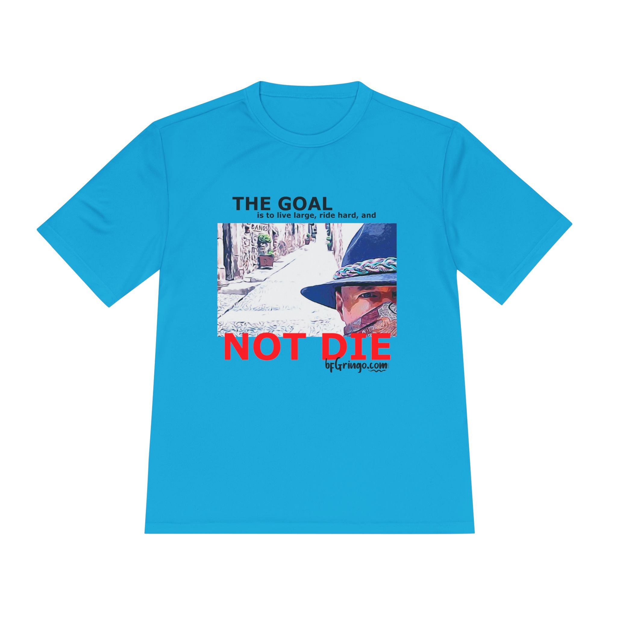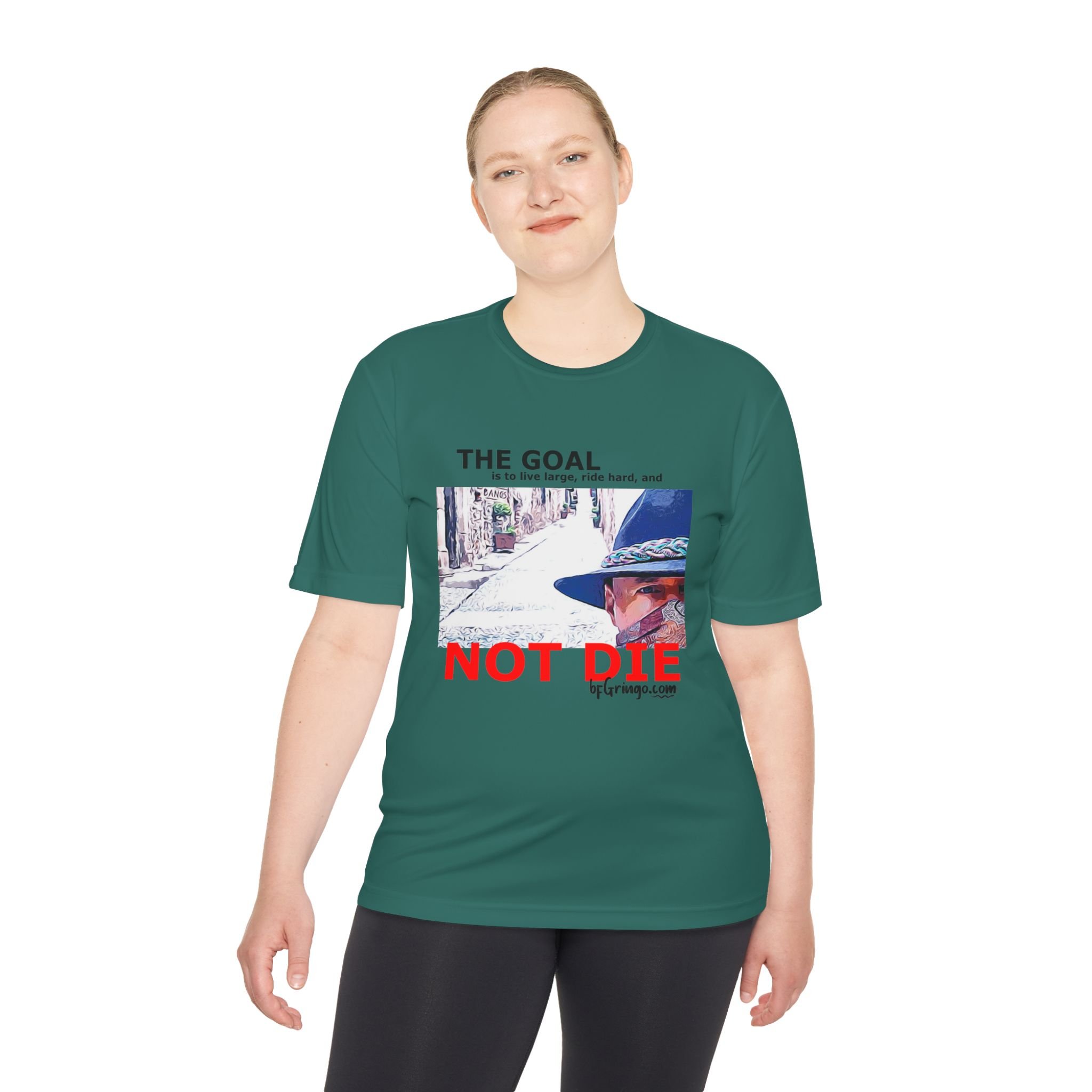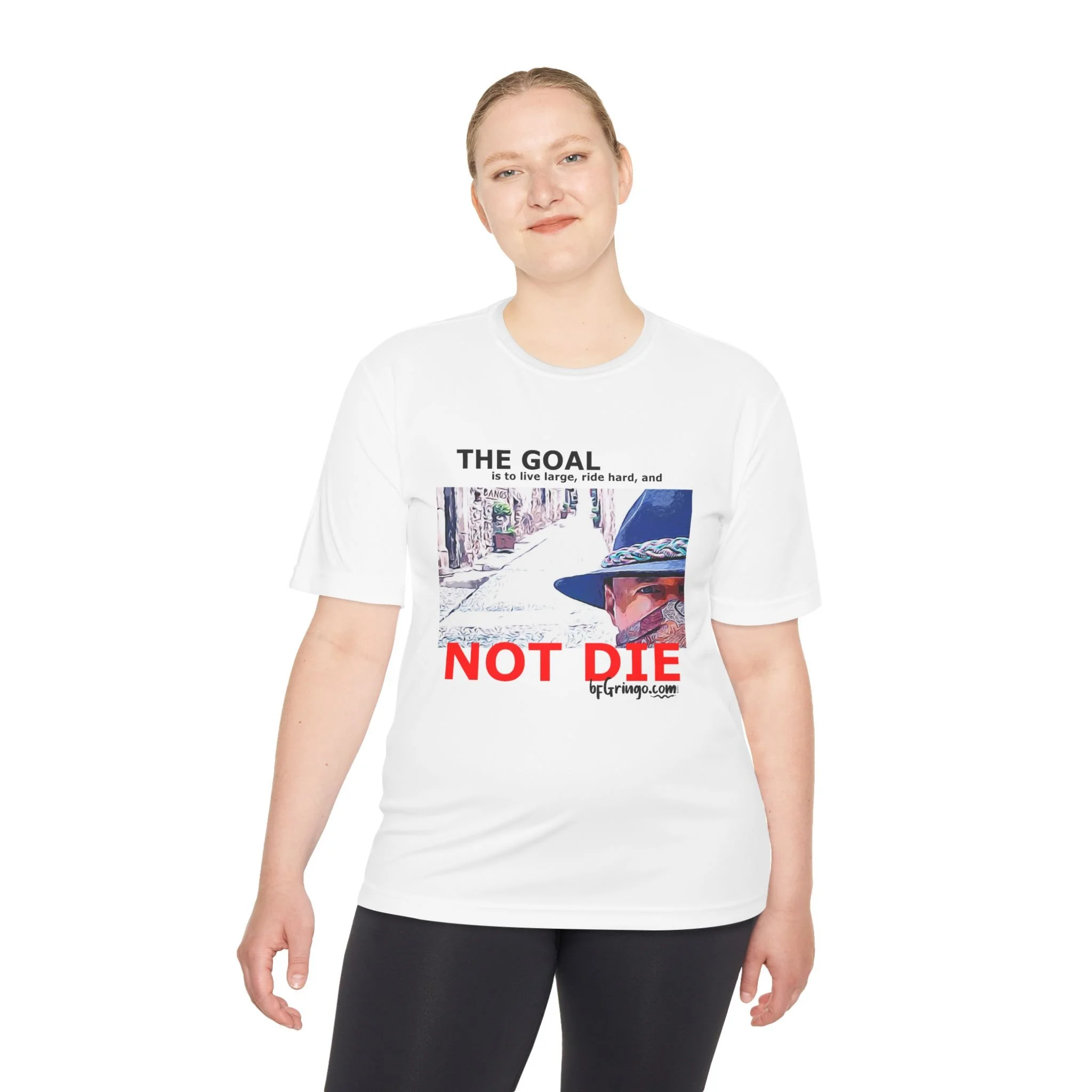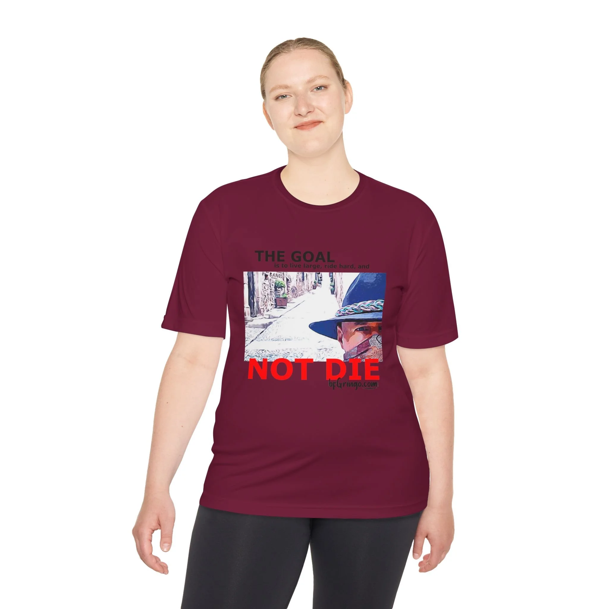 Motivational Unisex Moisture Wicking Tee - 'The Goal is to Live Large, Ride Hard, and NOT DIE'