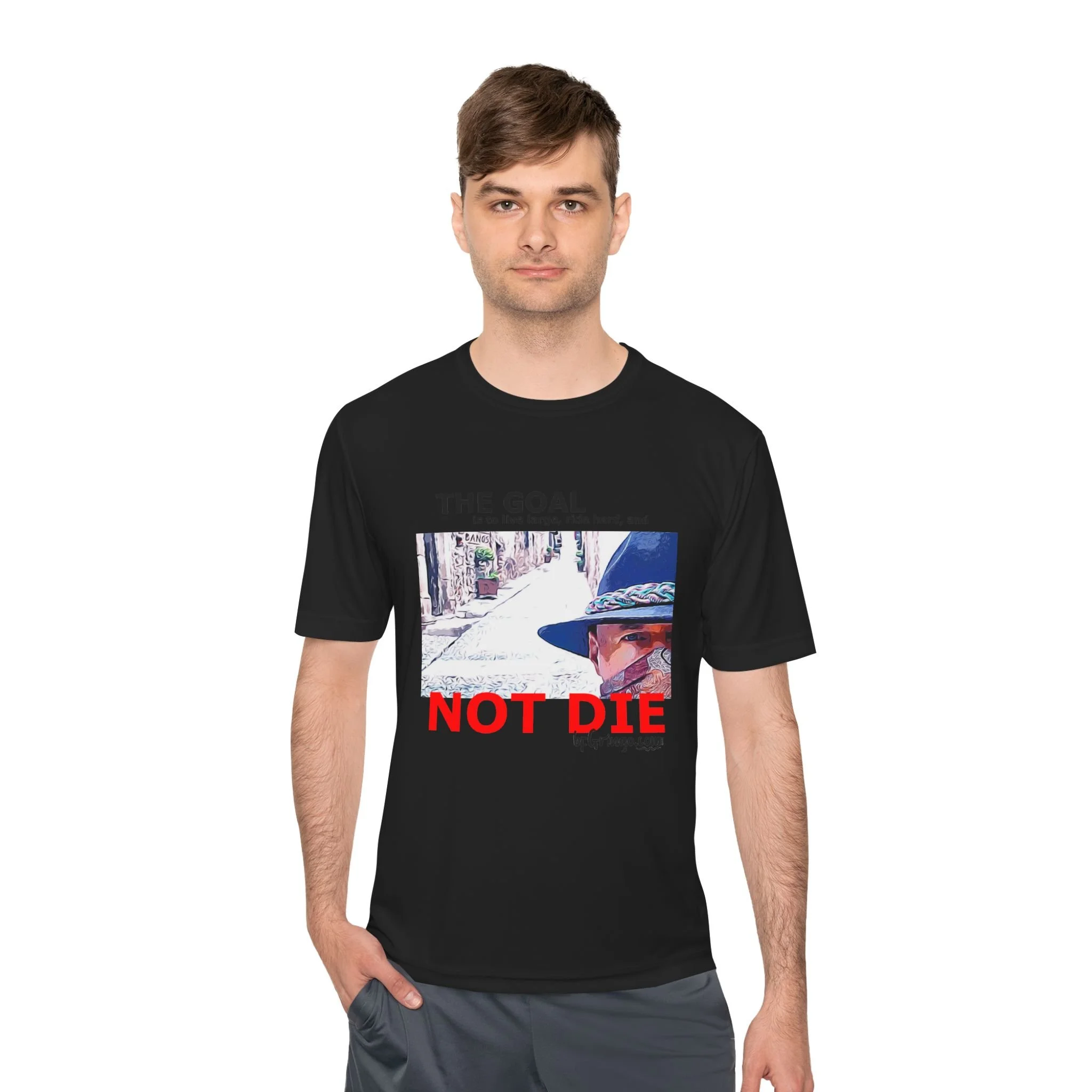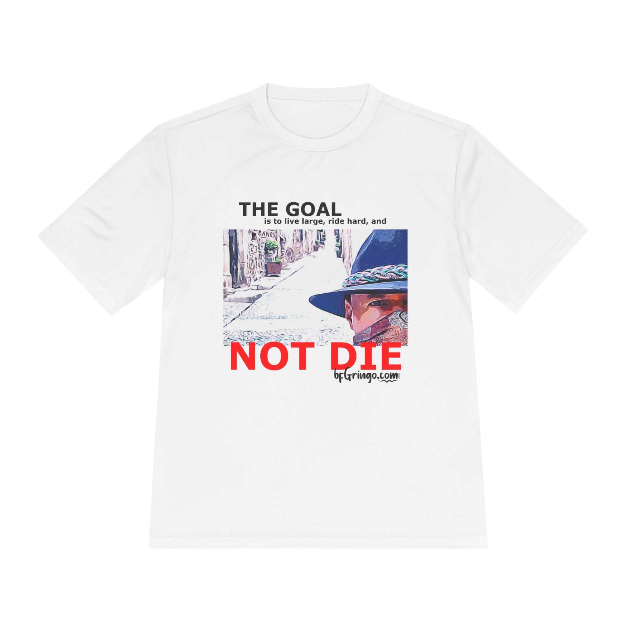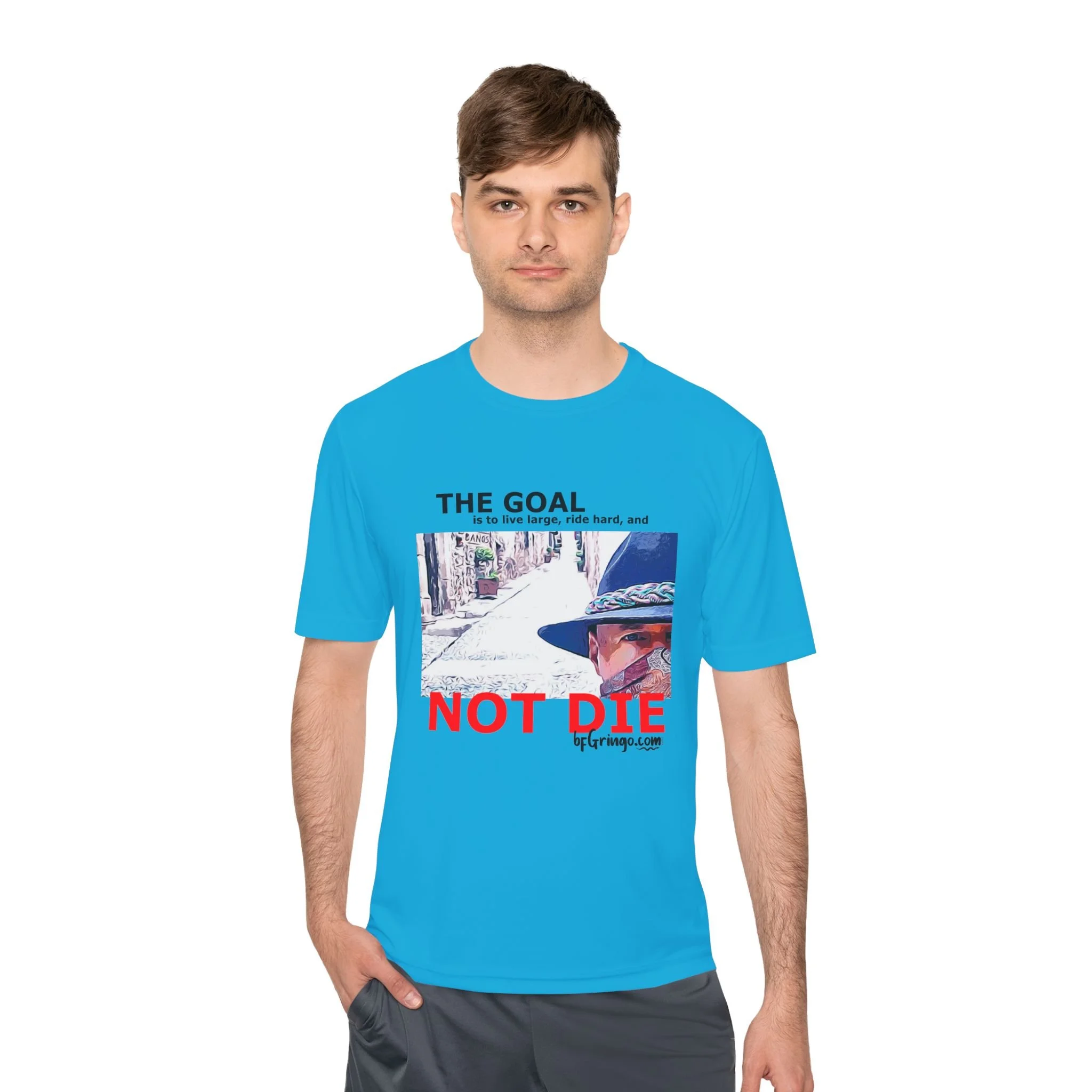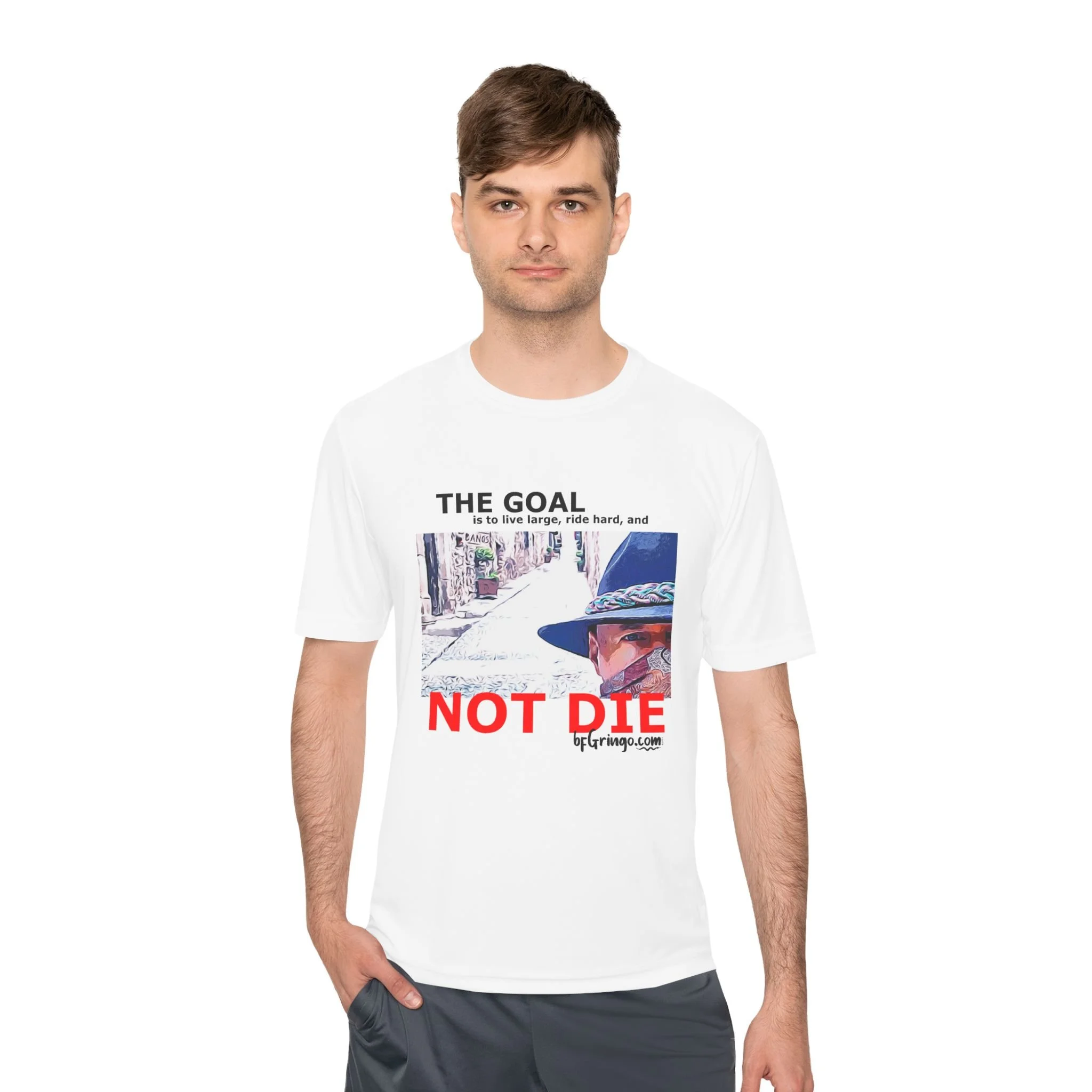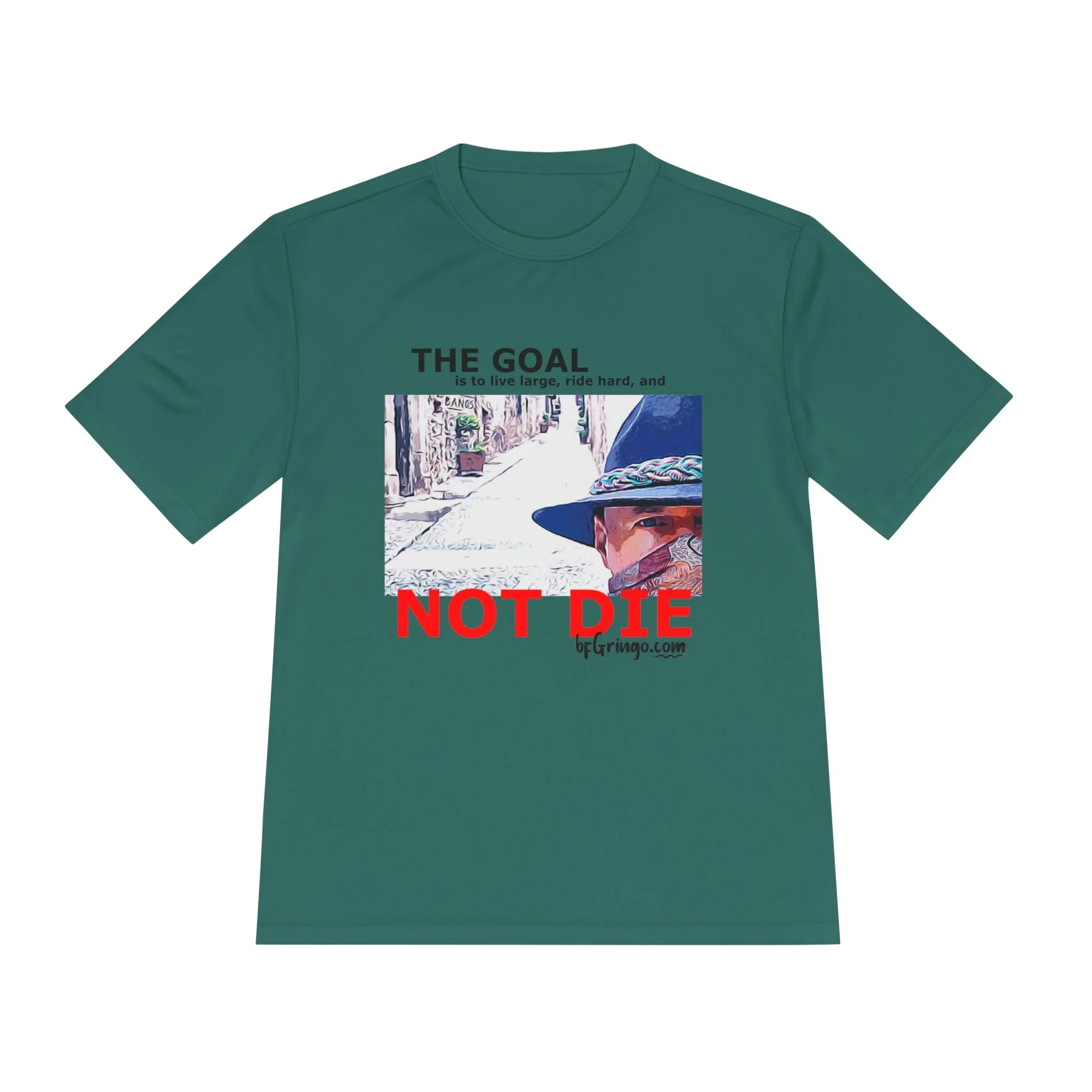 Motivational Unisex Moisture Wicking Tee - 'The Goal is to Live Large, Ride Hard, and NOT DIE'
